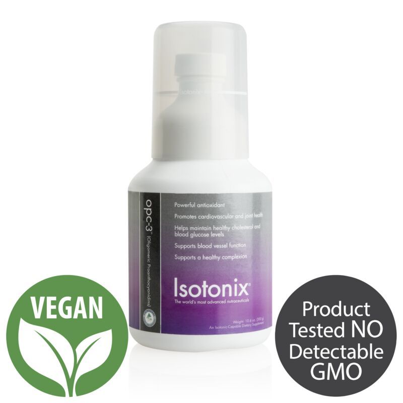 Isotonix OPC-3 is an isotonic-capable food supplement that is made from a combination of bilberry, grape seed, grape skin, pine bark extracts and citrus bioflavonoid complex, all found to be potent antioxidants. Oligomeric proanthocyanidins (OPCs) are bioflavonoids (complex organic plant compounds) found in fruits, vegetables and certain tree barks that provide nutritional benefits to the human body. Studies have shown OPCs to be more powerful than vitamin C and vitamin E in neutralizing free radicals. Isotonix OPC-3 is the leading isotonic product to contain Pycnogenol™ in the world. Pycnogenol is a natural plant extract from the bark of the French maritime pine tree and the most researched bioflavonoid.